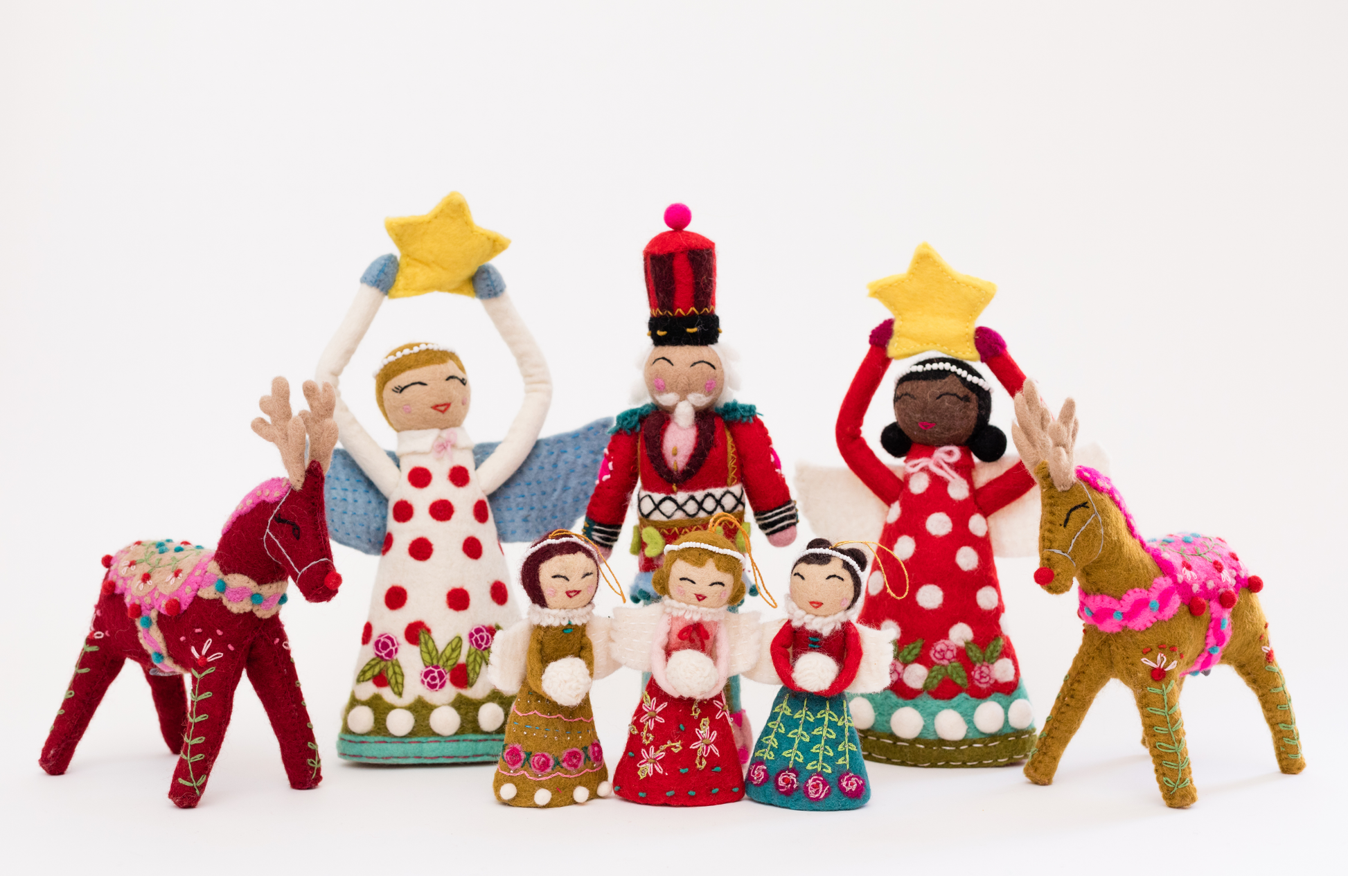 Can you think of anything cuter on your tree than these little angel ornaments? Us neither. Each has been hand-felted in a unique dress adorned with floral embroidery and a sweet bun hairstyle to match. Set of 3. Each ornament measures 6.5" in height.