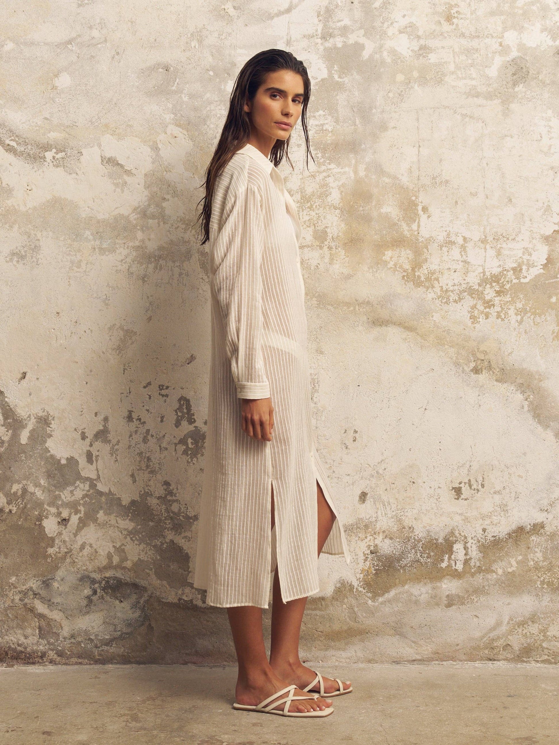 Handloom | Voyage Shirt Dress - White Stripes- One Size